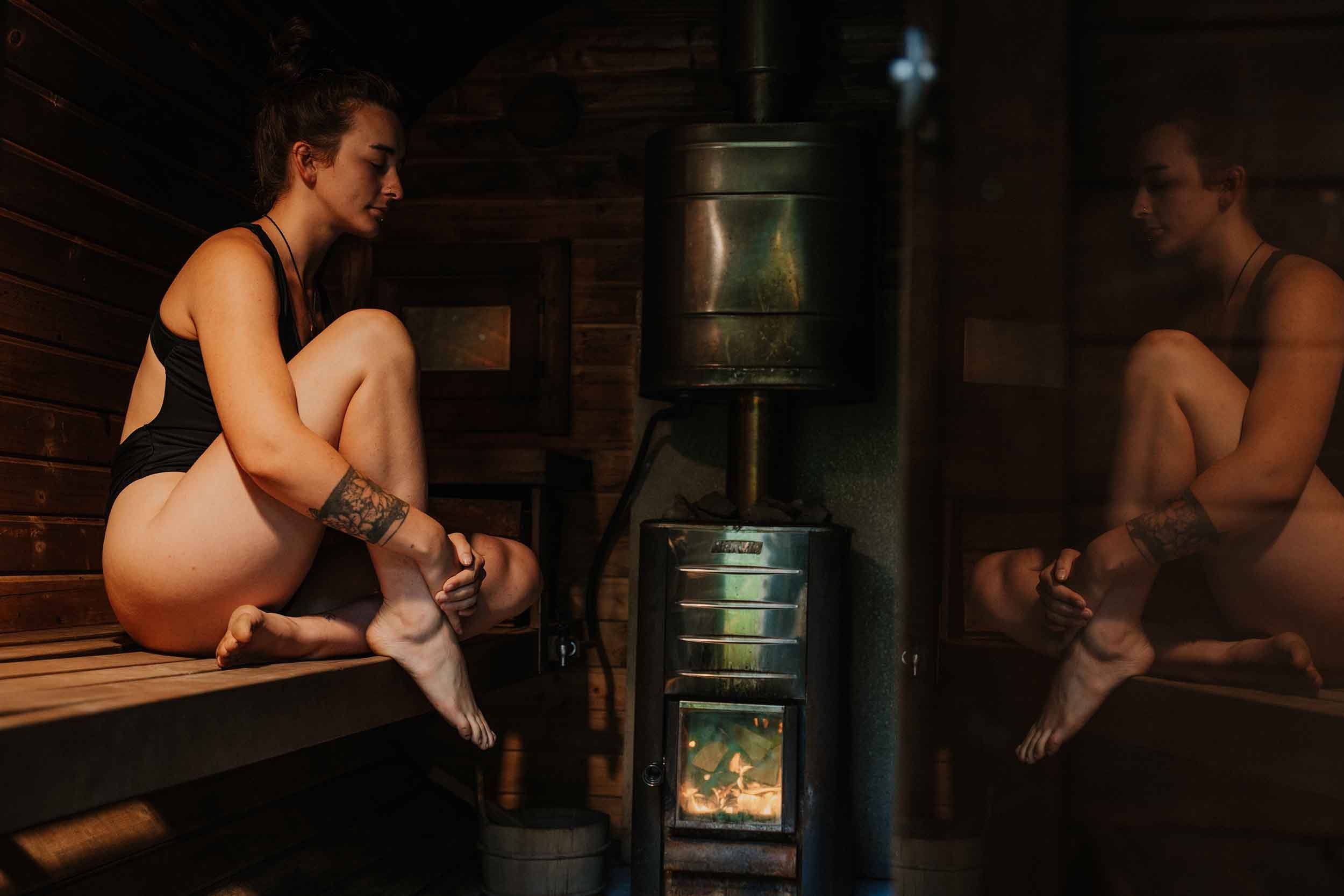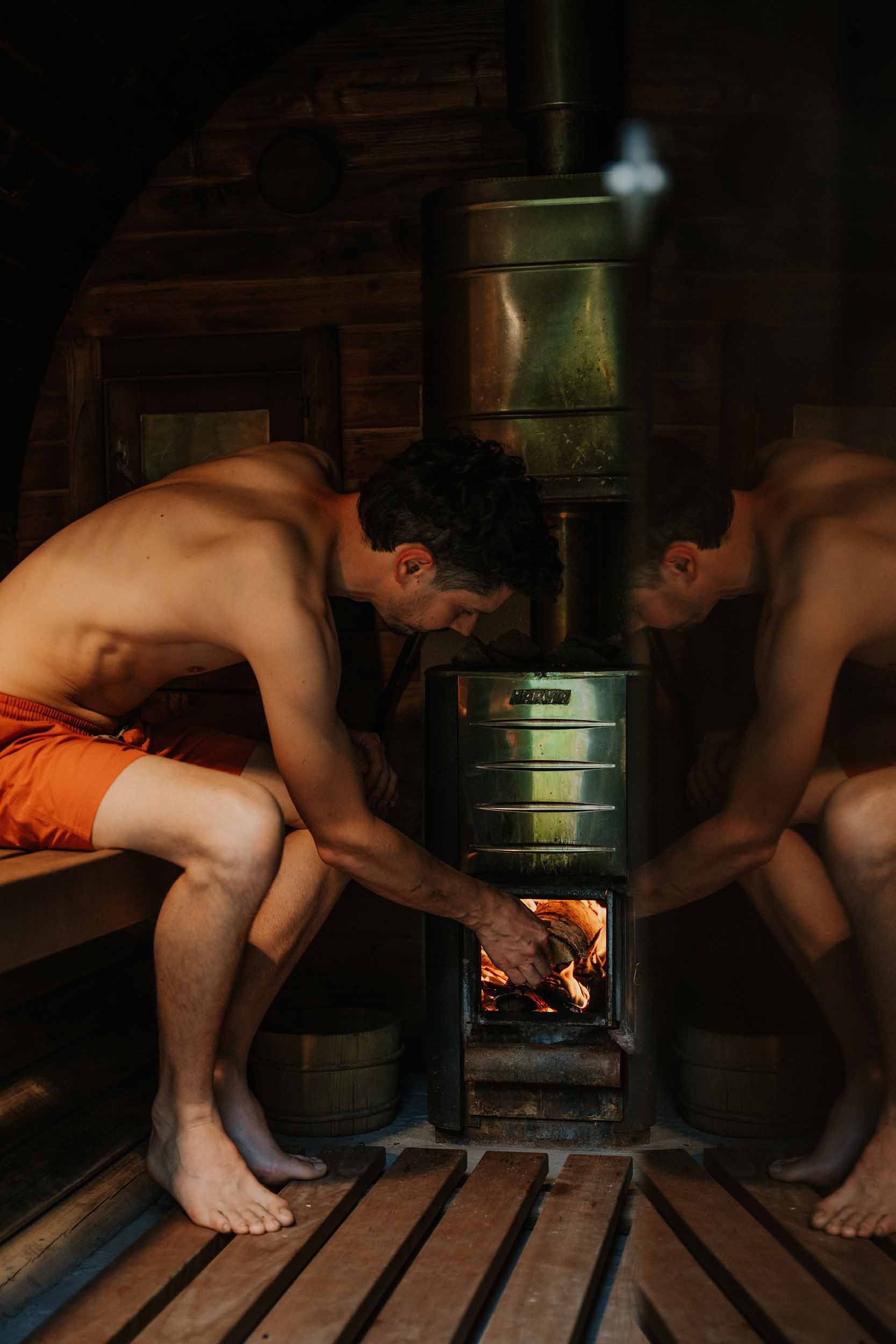 The sauna is a DIY affair - light the stove, close the door, enjoy